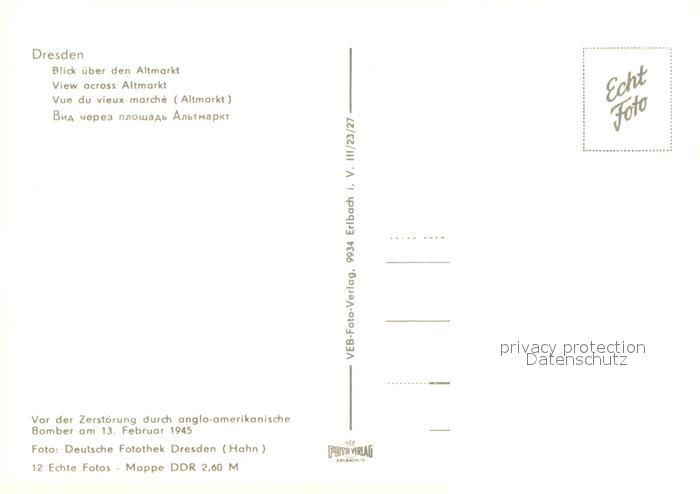 73745982 Dresden Elbe Altmarkt vor der Zerstoerung 1945 Fliegeraufnahme postalisch nicht gelaufen Erhaltung siehe scans [FriedD77] KatCode: 11110014262000