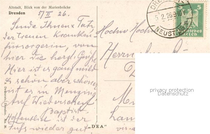 73778166 Dresden Elbe Altstadt Blick von der Marienbruecke postalisch gelaufen Erhaltung siehe scans [WerneD78] alte Postkarte Wern Katcode 11110014262000