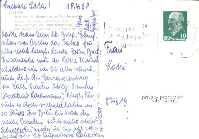 72081256 alte Postkarte DRESDEN Elbe Amalienstrasse postalisch gelaufen Erhaltung siehe scans KatCode: 11110014262000