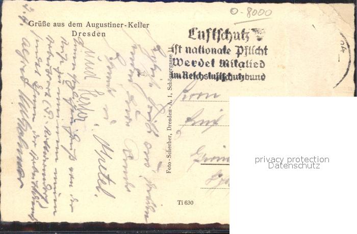 41974978 DRESDEN Elbe Augustiner Keller Bierkeller postalisch gelaufen Erhaltung siehe scans Alte Ansichtskarte Postkarte alte Postkarte Frie Katcode 11110014262000