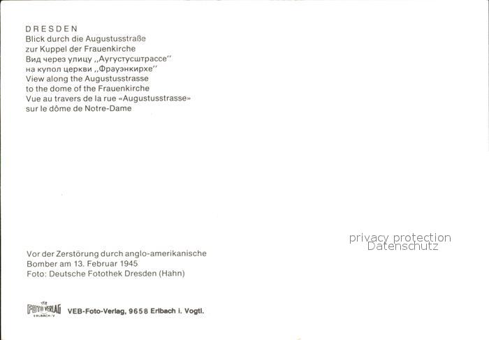 72395891 DRESDEN Elbe Augustusstrasse Kuppel Frauenkirche postalisch nicht gelaufen Erhaltung siehe scans KatCode: 11110014262000