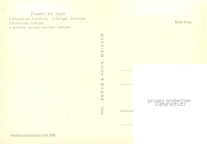 73032308 DRESDEN Elbe bei Nacht Altmarkt Kreuzkirche Zwinger Kranentor Kath Hofkirche Bruehlsche Terrasse postalisch nicht gelaufen Erhaltung siehe scans [WerneD78] KatCode: 11110014262000