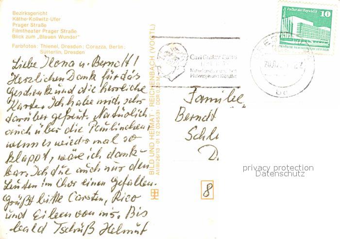 72919070 alte Postkarte DRESDEN Elbe Bezirksgericht Kaethe Kollwitz Ufer Prager-Strasse Filmtheater Blaues-Wunder postalisch gelaufen Erhaltung siehe scans [LiesaD40] KatCode: 11110014262000