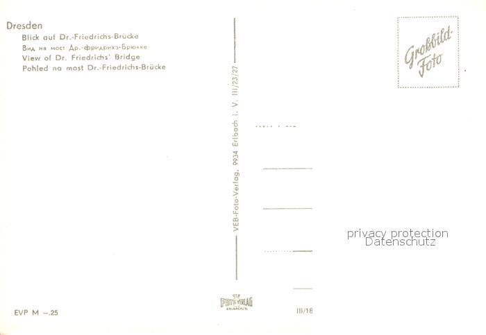 72952586 DRESDEN Elbe Blick auf Dr Friedrichs Bruecke Wohnblocks Hochhaeuser postalisch nicht gelaufen Erhaltung siehe scans [FriedD77] KatCode: 11110014262000