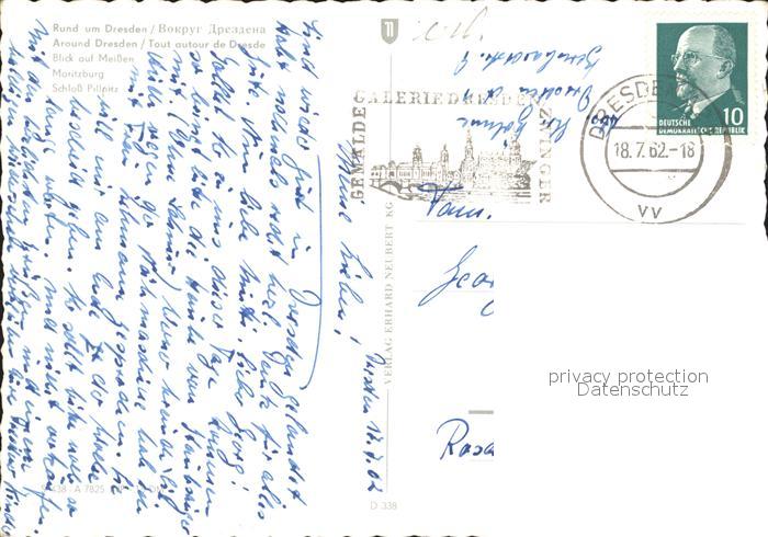 72354704 alte Postkarte DRESDEN Elbe Blick auf Meissen Moritzburg Schloss Pillnitz postalisch gelaufen Erhaltung siehe scans KatCode: 11110014262000