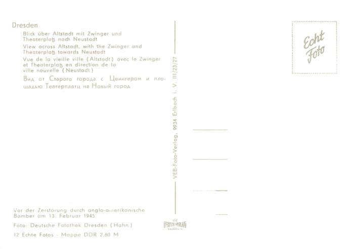 73876578 Dresden Elbe Blick ueber Altstadt mit Zwinger und Theaterplatz nach Neustadt postalisch nicht gelaufen Erhaltung siehe scans [WerneD78] Wern Katcode 11110014262000