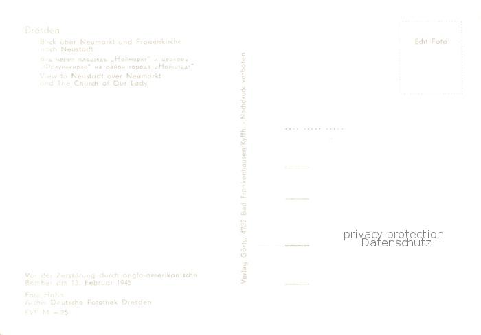 72977968 DRESDEN Elbe Blick ueber Neumarkt und Frauenkirche nach Neustadt vor der Zerstoerung 1945 Repro postalisch nicht gelaufen Erhaltung siehe scans [FriedD77] KatCode: 11110014262000