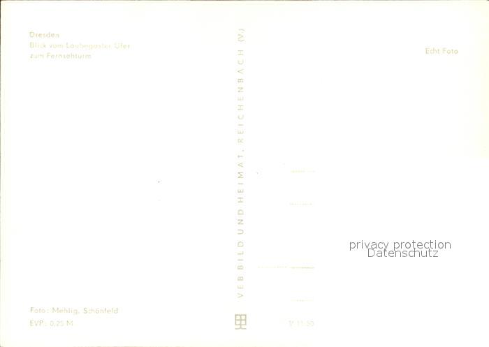 72461871 DRESDEN Elbe Blick vom Laubegaster Ufer zum Fernsehturm postalisch nicht gelaufen Erhaltung siehe scans KatCode: 11110014262000