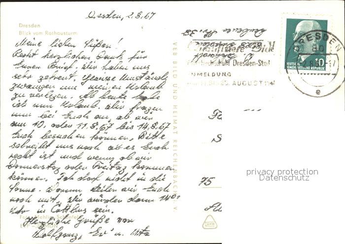 72299043 alte Postkarte DRESDEN Elbe Blick vom Rathausturm postalisch gelaufen Erhaltung siehe scans KatCode: 11110014262000