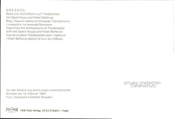 72357821 DRESDEN Elbe Blick vom Schlossturm Theaterplatz Opernhaus Hotel Bellevue Denkmal vor der Zerstoerung 1945 postalisch nicht gelaufen Erhaltung siehe scans KatCode: 11110014262000