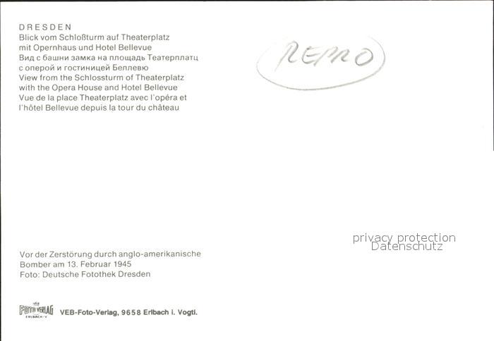 72313173 DRESDEN Elbe Blick vom Schlossturm Theaterplatz Opernhaus Hotel Bellevue postalisch nicht gelaufen Erhaltung siehe scans KatCode: 11110014262000