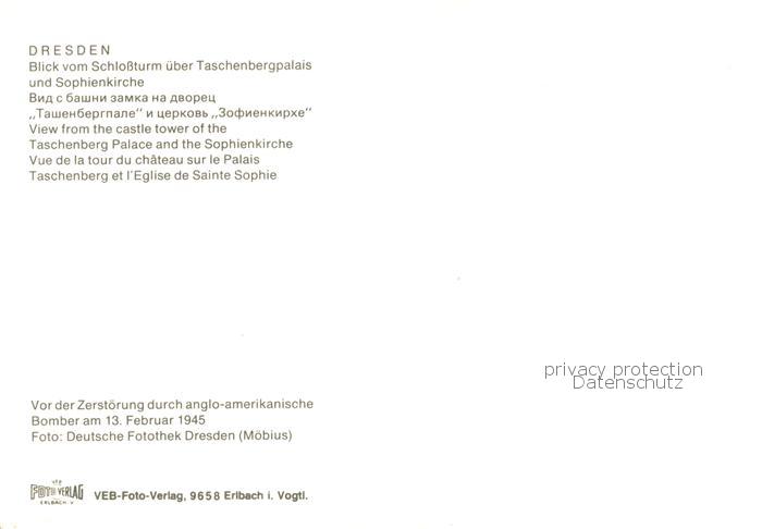 73764984 DRESDEN Elbe Blick vom Schlossturm ueber Taschenbergpalais und Sophienkirche postalisch nicht gelaufen Erhaltung siehe scans [WerneD78] Wern Katcode 11110014262000