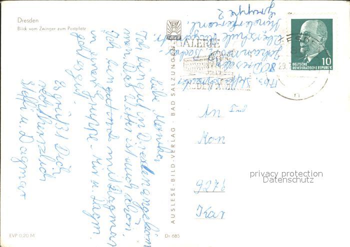 72324162 alte Postkarte DRESDEN Elbe Blick vom Zwinger zum Postplatz postalisch gelaufen Erhaltung siehe scans KatCode: 11110014262000