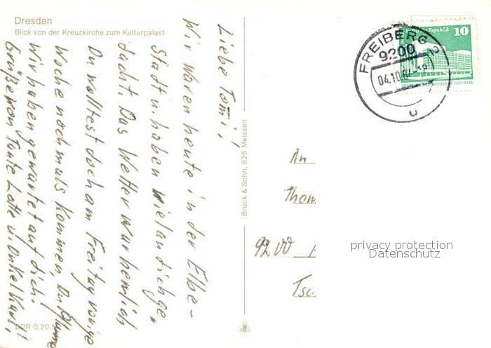 73104955 alte Postkarte DRESDEN Elbe Blick von der Kreuzkirche zum Kulturpalast postalisch gelaufen Erhaltung siehe scans [WerneD78] KatCode: 11110014262000