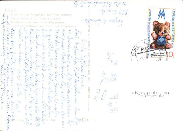 72299475 alte Postkarte DRESDEN Elbe Blick von der Ring zur Amalienstrasse postalisch gelaufen Erhaltung siehe scans KatCode: 11110014262000