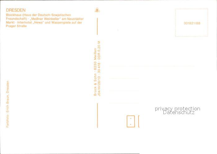 72372050 DRESDEN Elbe Blockhaus Meissner Weinkeller Neustaedter Markt Interhotel Newa Wasserspiele Prager Str postalisch nicht gelaufen Erhaltung siehe scans KatCode: 11110014262000