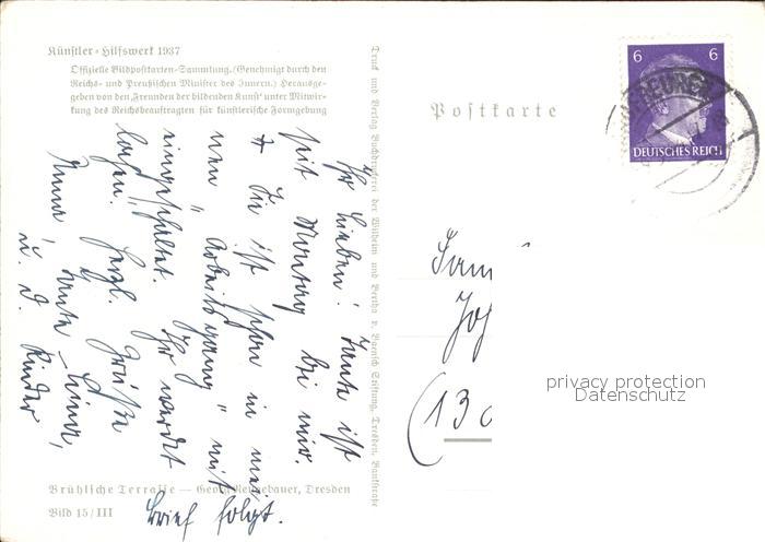 72118882 alte Postkarte DRESDEN Elbe Bruehlsche Terrasse Kuenstlerkarte postalisch gelaufen Erhaltung siehe scans KatCode: 11110014262000