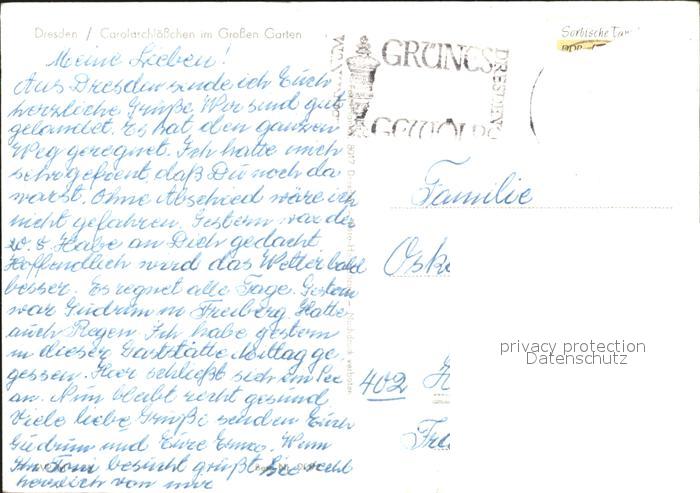 72358363 alte Postkarte DRESDEN Elbe Carolaschloesschen im Grossen Garten postalisch gelaufen Erhaltung siehe scans KatCode: 11110014262000