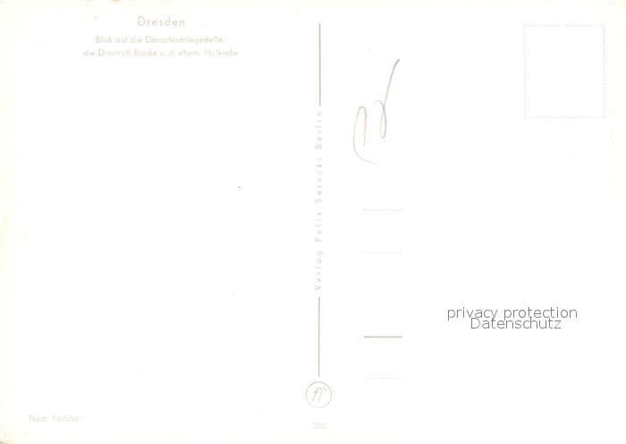 73015383 DRESDEN Elbe Dampferanlegestelle Dimitroff Bruecke und ehem Hofkirche postalisch nicht gelaufen Erhaltung siehe scans [WerneD78] KatCode: 11110014262000