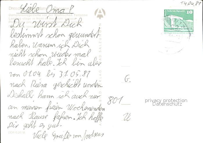 72314776 alte Postkarte DRESDEN Elbe Dampferanlegestelle vor der Bruehlschen Terrasse postalisch gelaufen Erhaltung siehe scans KatCode: 11110014262000