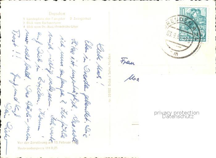 72473884 alte Postkarte DRESDEN Elbe Dampferanlegestelle Zwingerhof Stadtblick Dr Rud Friedrichs Ufer postalisch gelaufen Erhaltung siehe scans KatCode: 11110014262000