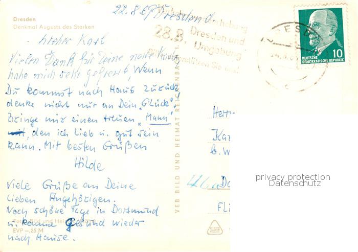73832726 Dresden Elbe Denkmal Augusts des Starken Strassenbahn postalisch gelaufen Erhaltung siehe scans [FriedD77] alte Postkarte Frie Katcode 11110014262000