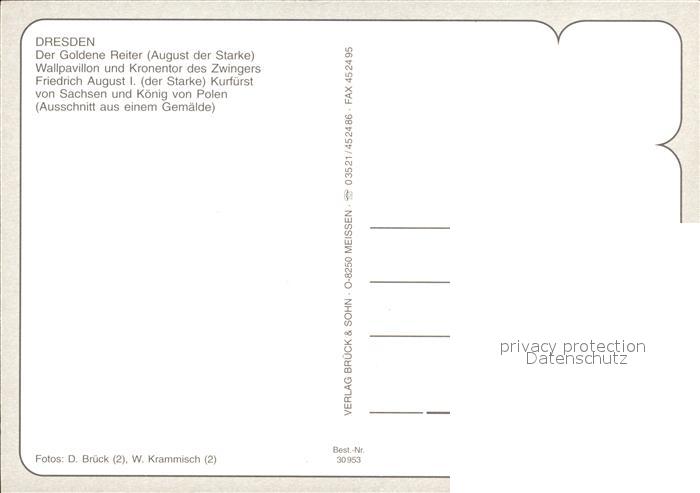 72372085 DRESDEN Elbe Der goldene Reiter Wallpavillon Kronentor des Zwingers Portrait Friedrich August I postalisch nicht gelaufen Erhaltung siehe scans KatCode: 11110014262000