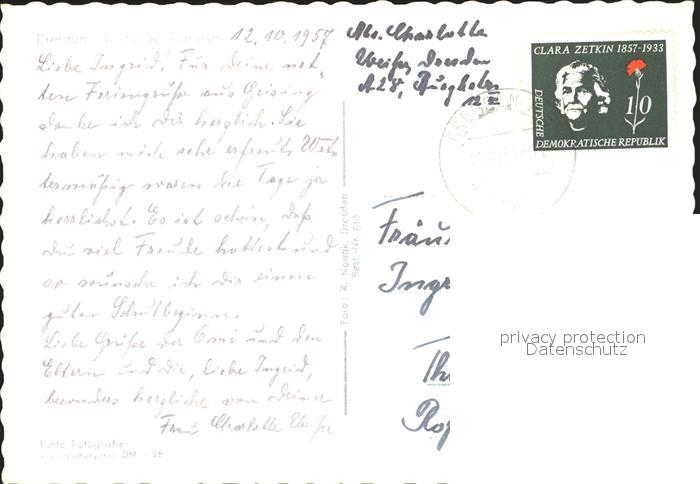 72359996 alte Postkarte DRESDEN Elbe Deutsche Terrasse Kirche Denkmal postalisch gelaufen Erhaltung siehe scans KatCode: 11110014262000