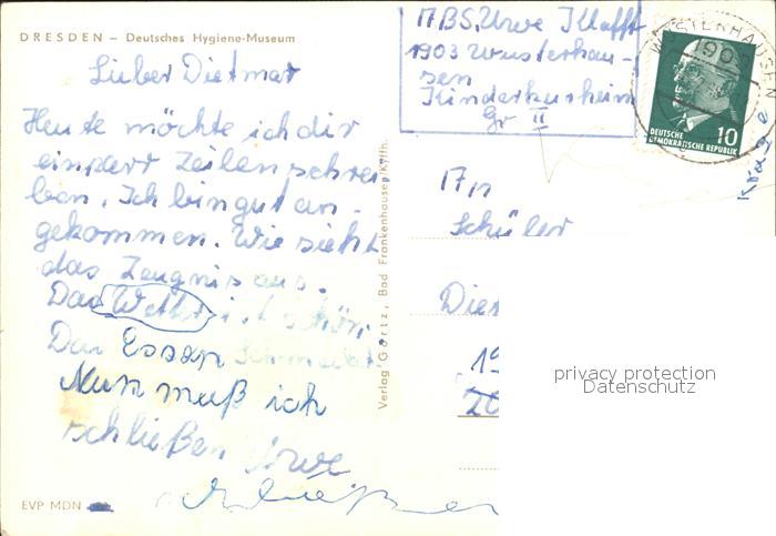 72055311 alte Postkarte DRESDEN Elbe Deutsches Hygiene Museum postalisch gelaufen Erhaltung siehe scans KatCode: 11110014262000