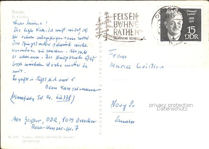 72414230 alte Postkarte DRESDEN Elbe Dr. Kuelz Ring postalisch gelaufen Erhaltung siehe scans KatCode: 11110014262000