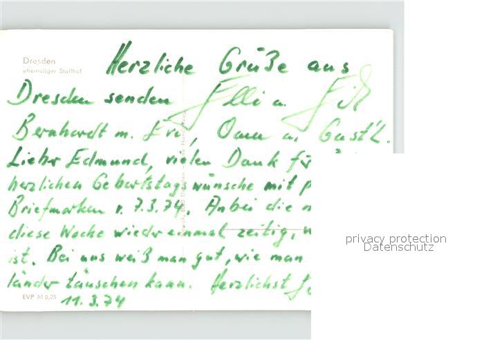 71900193 DRESDEN Elbe ehemaliger Stallhof postalisch nicht gelaufen Erhaltung siehe scans KatCode: 11110014262000