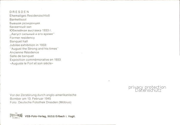 72083854 DRESDEN Elbe Ehemaliges Residenzschloss Bankettsaal postalisch nicht gelaufen KatCode: 11110014262000