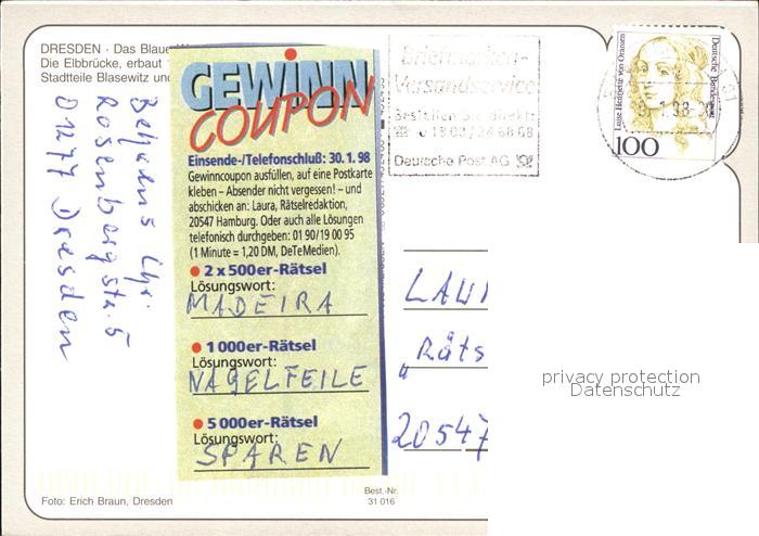 71928776 alte Postkarte DRESDEN Elbe Elbbruecke Blasewitz postalisch gelaufen Erhaltung siehe scans KatCode: 11110014262000