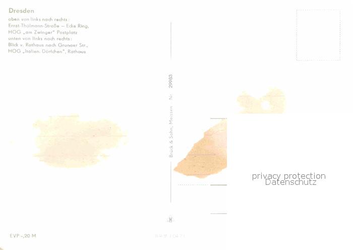 72623804 DRESDEN Elbe Ernst Thaelmann Platz HOG Am Zwinger Postplatz Rathaus HOG Italienisches Doerfchen Rathaus postalisch nicht gelaufen Erhaltung siehe scans [WerneD78] KatCode: 11110014262000