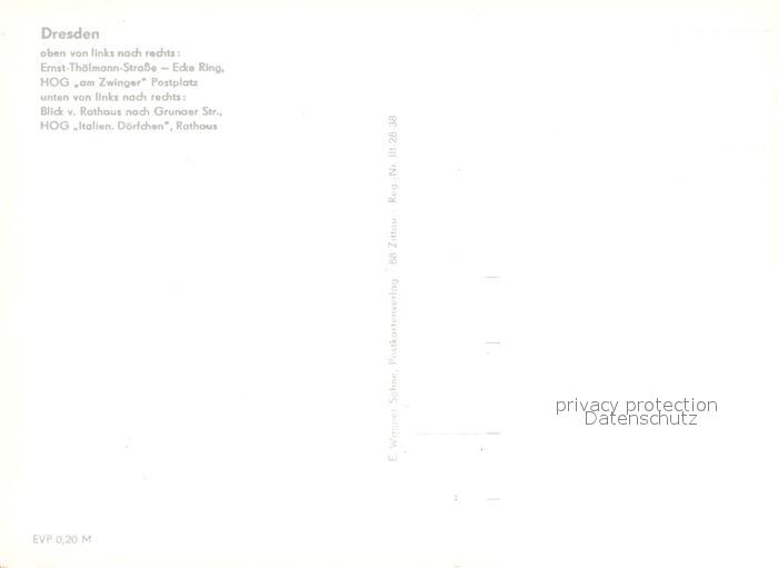 73015393 DRESDEN Elbe Ernst Thaelmann Str Ecke Ring HOG am Zwinger Postplatz Rathaus HOG Italien Doerfchen Rathaus postalisch nicht gelaufen Erhaltung siehe scans [WerneD78] KatCode: 11110014262000