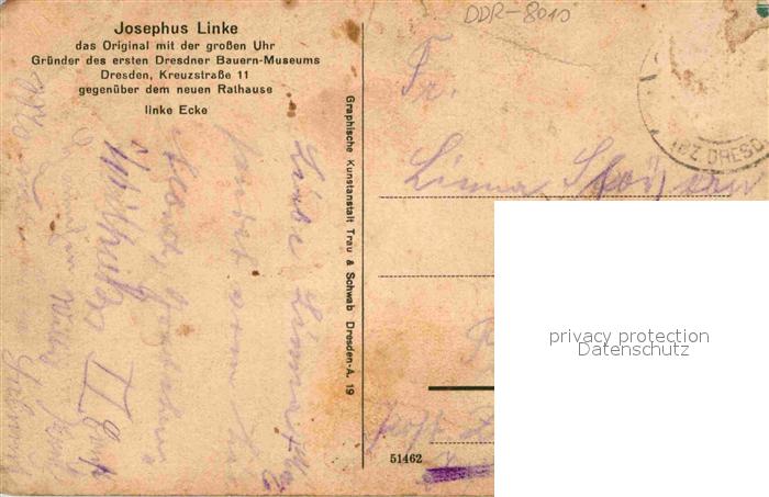 42714003 alte Postkarte DRESDEN Elbe Erstes Bauernmuseum Josephus Linke postalisch gelaufen Erhaltung siehe scans [WerneD78] KatCode: 11110014262000