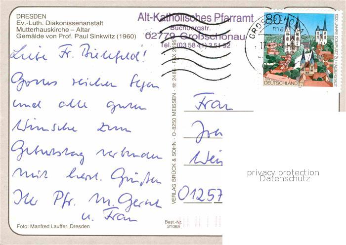 72622672 alte Postkarte DRESDEN Elbe Ev luth Diakonissenanstalt Altar postalisch gelaufen Erhaltung siehe scans [WerneD78] KatCode: 11110014262000