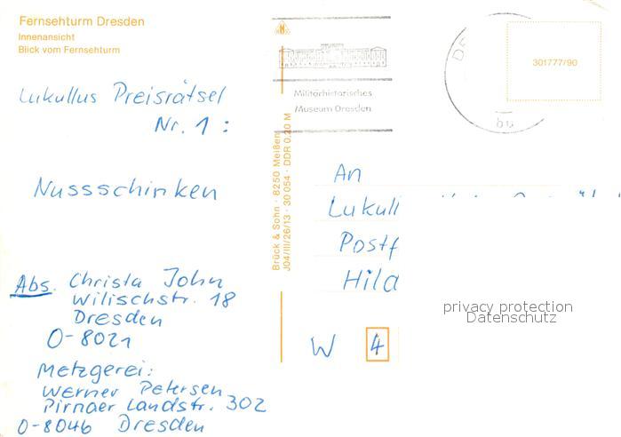 73017819 alte Postkarte DRESDEN Elbe Fernsehturm Innenansicht Panorama postalisch gelaufen Erhaltung siehe scans [WerneD78] KatCode: 11110014262000