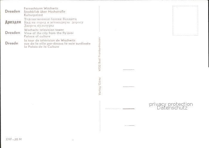 72357351 DRESDEN Elbe Fernsehturm Wachwitz Kulturpalast Hochstrasse postalisch nicht gelaufen Erhaltung siehe scans KatCode: 11110014262000