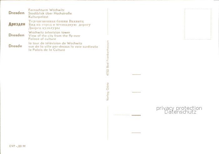 72304872 DRESDEN Elbe Fernsehturm Wachwitz Stadtblick Hochstrasse Kulturpalast postalisch nicht gelaufen Erhaltung siehe scans KatCode: 11110014262000
