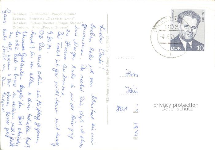 72182297 alte Postkarte DRESDEN Elbe Filmtheater Prager Strasse postalisch gelaufen Erhaltung siehe scans KatCode: 11110014262000