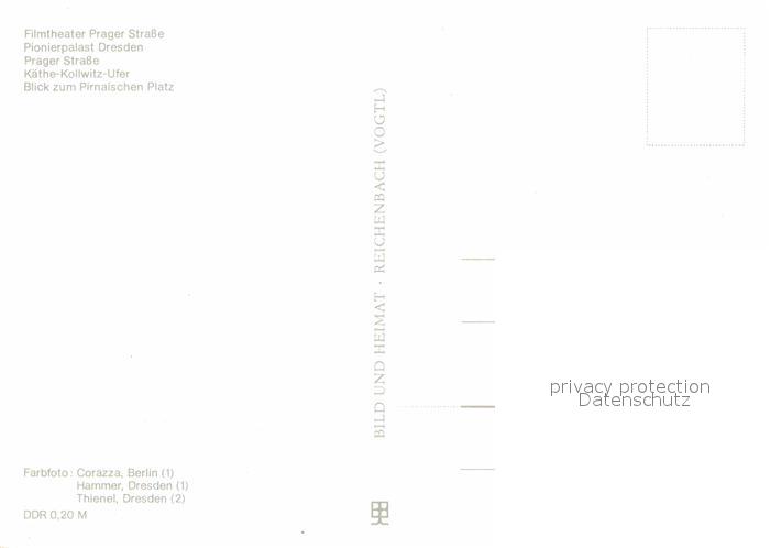 72919573 DRESDEN Elbe Filmtheater Prager Strasse Pionierpalast Kaethe Kollwitz Ufer Pirnaischer Platz Hochhaeuser postalisch nicht gelaufen Erhaltung siehe scans [FriedD77] KatCode: 11110014262000