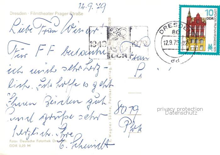 73095139 alte Postkarte DRESDEN Elbe Filmtheater Prager Strasse postalisch gelaufen Erhaltung siehe scans [KathaD81] KatCode: 11110014262000