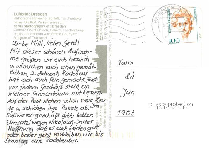 72720828 alte Postkarte DRESDEN Elbe Fliegeraufnahme Kirche Schloss Taschenbergpalais Stallhof Verkehrsmuseum postalisch gelaufen Erhaltung siehe scans [LiesaD40] KatCode: 11110014262000