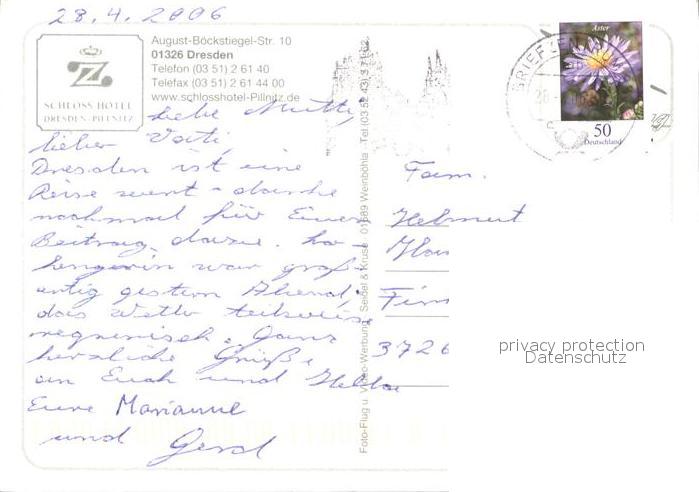 71847622 alte Postkarte DRESDEN Elbe Fliegeraufnahme Schloss-Hotel Pillnitz postalisch gelaufen Erhaltung siehe scans KatCode: 11110014262000