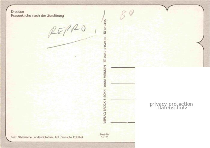 74010169 DRESDEN Elbe Frauenkirche nach Zerstoerung 1945 postalisch nicht gelaufen Erhaltung siehe scans [WerneD78] KatCode: 11110014262000