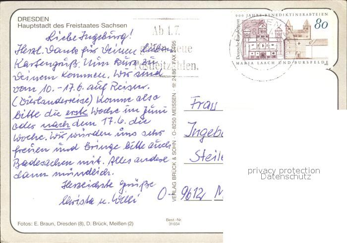 72370983 alte Postkarte DRESDEN Elbe Freistaat Sachsen Semperoper Ufer Zwinger postalisch gelaufen Erhaltung siehe scans KatCode: 11110014262000