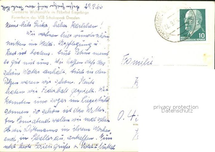 72445390 alte Postkarte DRESDEN Elbe Gaststaette Wahlsmuehle Poebeltal Ferienheim postalisch gelaufen Erhaltung siehe scans KatCode: 11110014262000