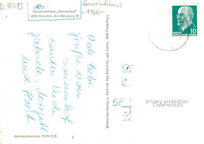 73870855 Dresden Elbe Gemeindehaus Sonnenhof postalisch gelaufen Erhaltung siehe scans [WerneD78] alte Postkarte Wern Katcode 11110014262000