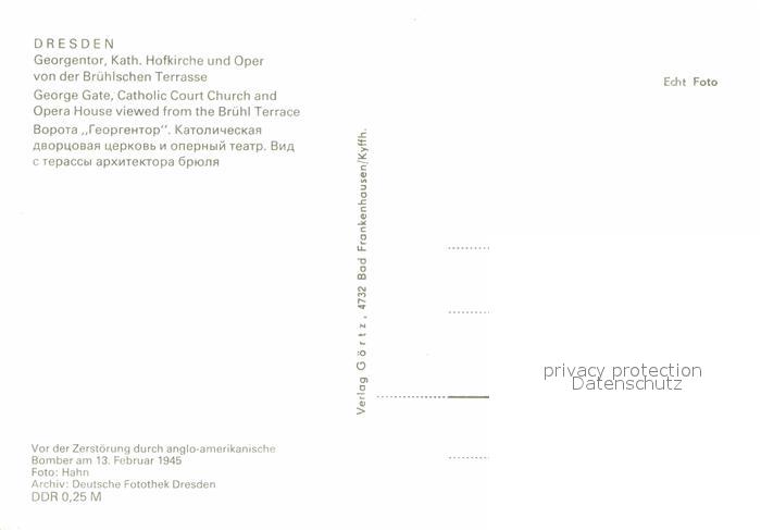 72901180 DRESDEN Elbe Georgentor Katholische Hofkirche Oper postalisch nicht gelaufen Erhaltung siehe scans [PaolaD17] KatCode: 11110014262000